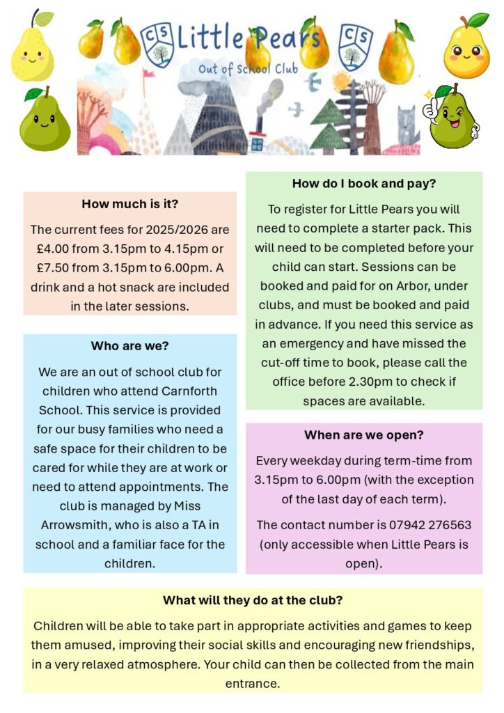 Little Pears is our ‘Wrap around’ school club for children from Carnforth School aged 3 – 11.